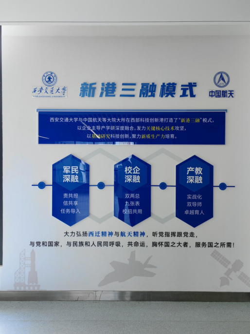 西安交大在与航天科技六院、五院、四院、创新院等大院大所深度融合过程中,探索出一种企业主导的产学研深度融合新模式,就是将“甲乙双方、一纸合同、一个项目、一笔经费”的传统方式迭代到“水乳交融、校企团队参加国家重大科研任务”的模式。双方依托创新港系列化体制机制创新,打破高校传统“院系制、学科化”组织模式,打造多学科交叉融合生态,汇聚“百人攻关队伍”,承担国内最先进、最复杂的新型航天动力的总体任务。