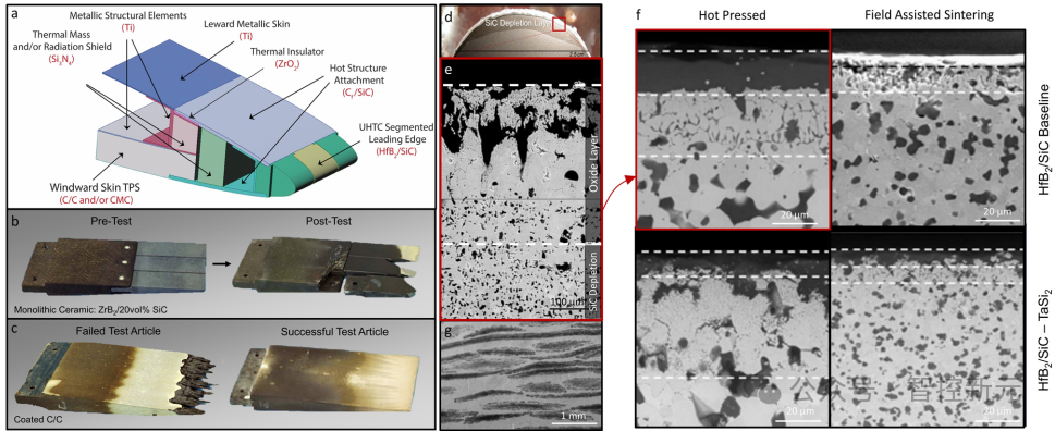 图3 | 在不同条件下处理的高超音速机翼前缘设计及相关材料微观结构显示材料氧化情况