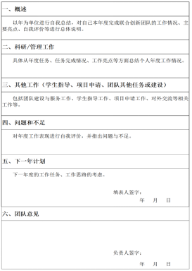 (9)总结报告(Personal/Project summary):以“计划表”管理的科研人员每年对工作情况、主要亮点、自我评价等进行总体说明,包括科研管理工作、团队建设与服务等其他相关工作、年度工作的问题与不足、下一年度工作计划并由团队负责人签字;以“任务单”管理的科研人员,按照“任务单”的周期提交技术总结报告,同时提交简要的工作总结和经费使用情况等说明。