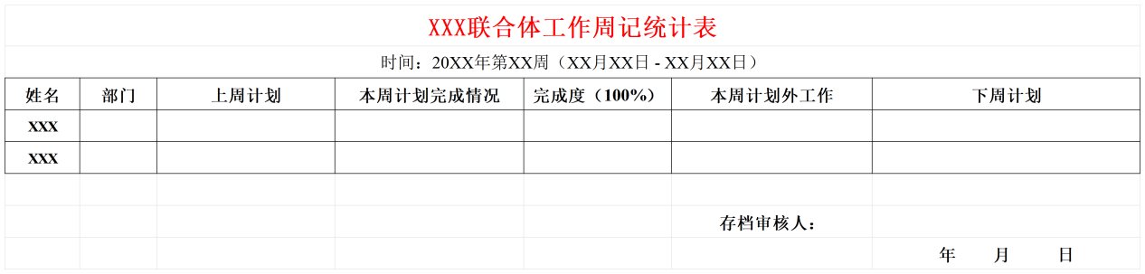 (7)周记(Weekly record):由“计划表”管理的科研人员(含联合培养研究生),根据任务的完成度以周为节点进行完成情况记录,并由办公室统计,由技术方向(班组/部门)周例会进行完成进展的敦促和研讨。
