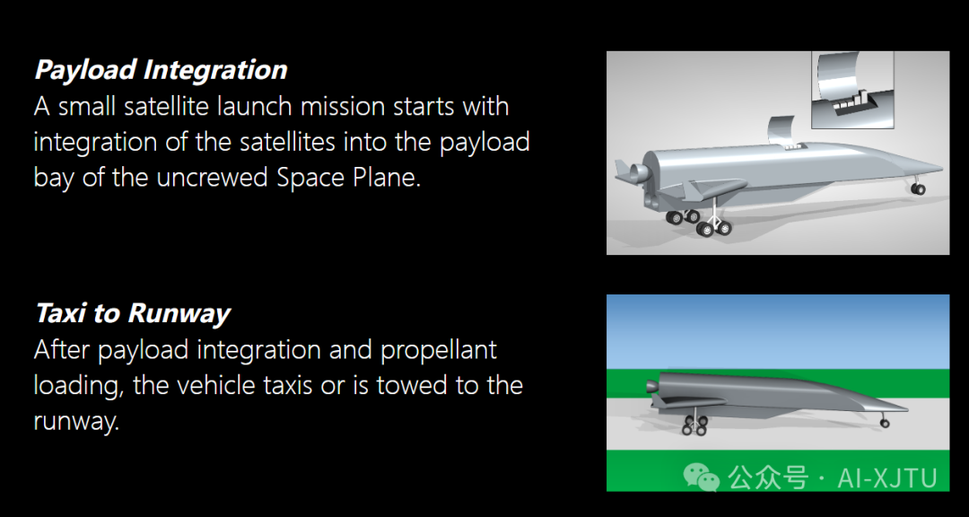 1.有效载荷装载:小型卫星发射任务始于将卫星集成到无人驾驶航天飞机有效载荷舱。